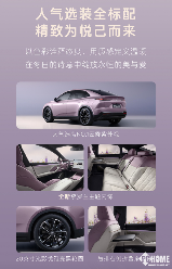 同时,该车采用选装热度第一的“云霞紫”车漆,搭配20英寸光影优雅亮黑轮圈,轮毂造型强化了视觉辨识度,前排以丁香紫与柔白皮革前后拼接环抱驾驶位,后排采用上紫下白分层布局,搭配专属大理石纹饰板,全舱覆盖15平方米母婴级健康材质,座椅采用十层复合结构,久坐不倦。