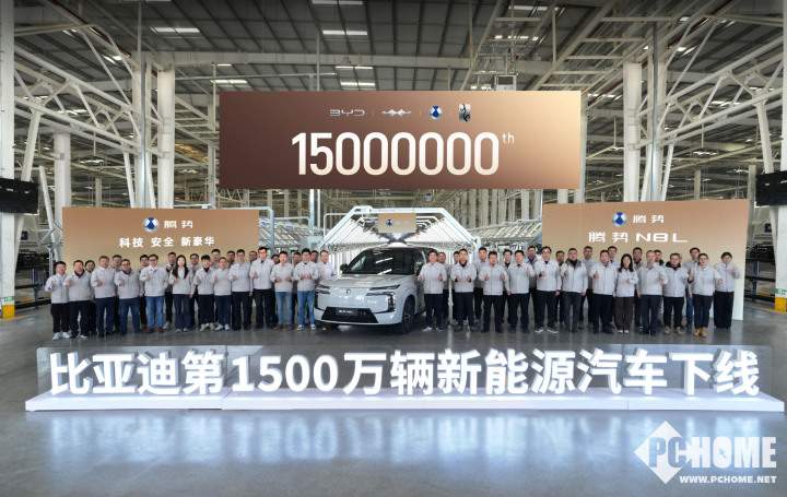 2025年12月18日消息,比亚迪第1500万辆新能源汽车于今日在济南工厂正式下线,同时也是腾势N8L的第15000辆下线。