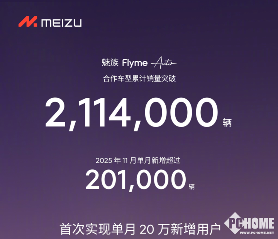 2025年12月11日,魅族对外公布Flyme Auto智能座舱系统的市场表现:截至2025年11月,其合作车型累计销量已突破211.4万辆,生态用户增速位居行业第一。