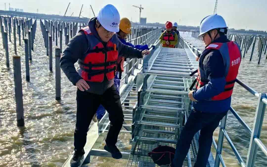 在吕四项目的安全日志里,记录着大风天气、暴雨预警、潮汐延误作业等不同的数据,如何在恶劣环境下确保施工安全与效率,成为贯穿项目始终的必修课。项目团队建立预警响应机制,以设计优化、工序协同破解困局,吕四项目的顺利并网,展现出了他们向海要地、与浪共舞的智慧。通过团队协作与科学调度,不仅成功克服了雨季施工难、大风频发、潮汐作业窗口短等多重挑战,更以安全优先为前提,实现了工期与质量双达标,最终项目以光伏发电和渔业养殖相结合,形成“水上发电、水下养殖”的复合产业模式,在5800亩海域上实现滩涂资源的高效利用和生态开发。